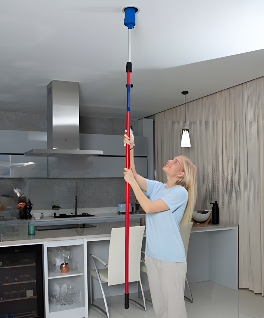 1. Attach the EZX Bulb Remover to a standard “Painters Pole” suitable for your ceiling height.